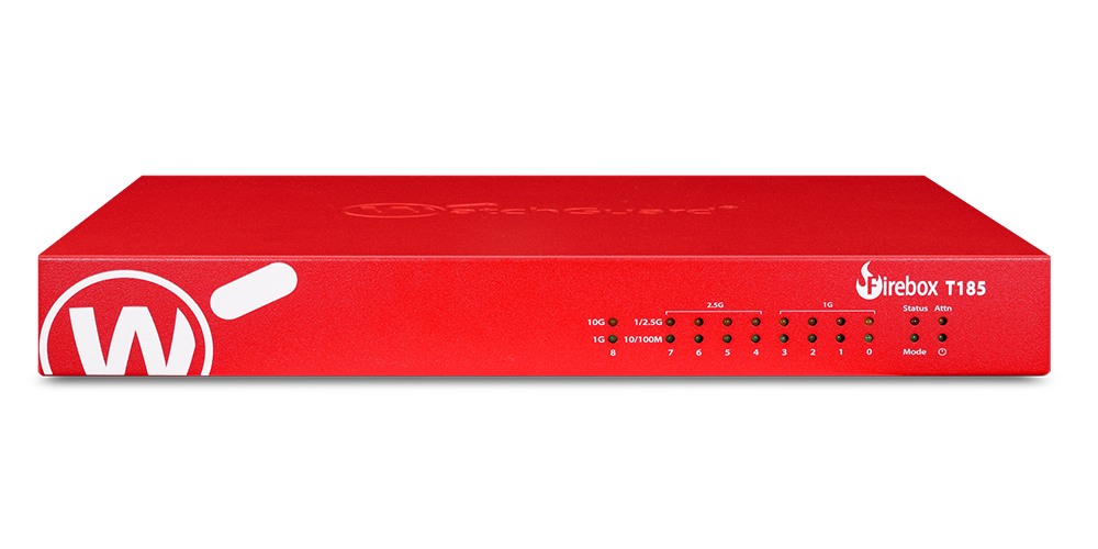 Die Firebox T185 ist die leistungsstärkste Tabletop Firewall der Firebox T-Serie, die für höhere Datenverkehrslasten in anspruchsvollen Umgebungen entwickelt wurde. Sie verfügt über SFP+ Glasfaser und bietet flexible, leistungsstarke Konnektivität, die auf Ihre